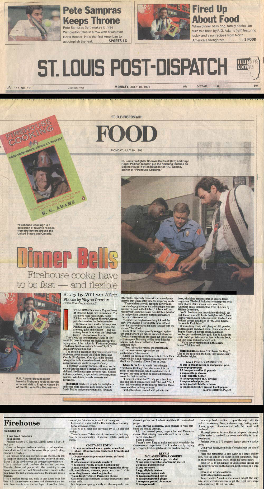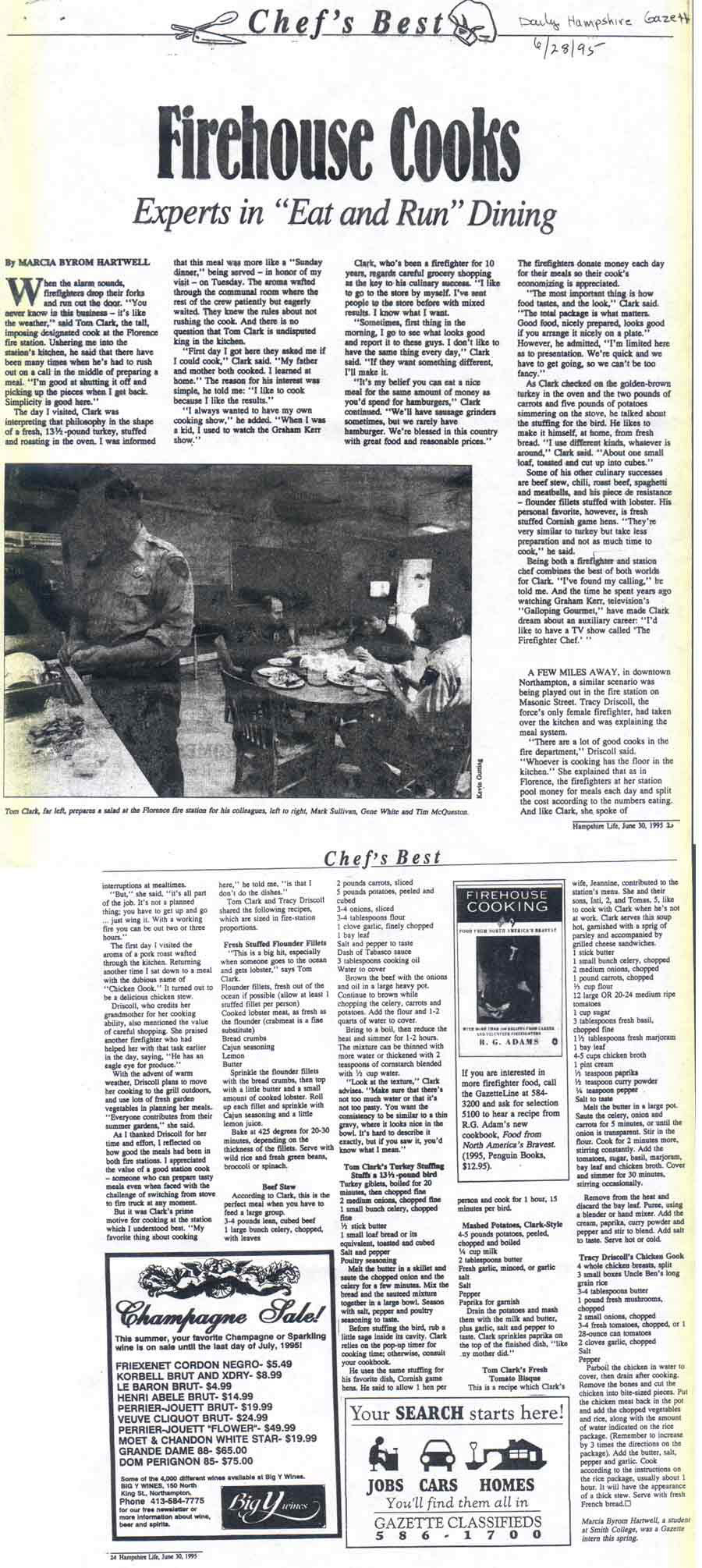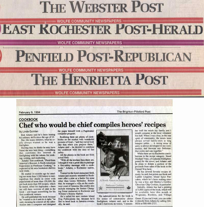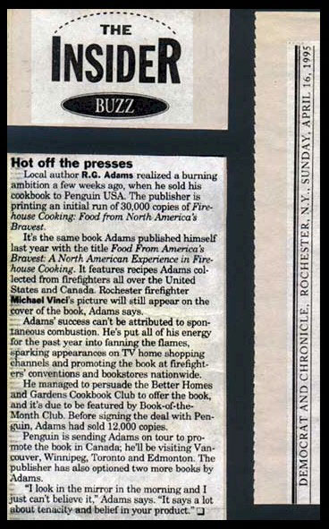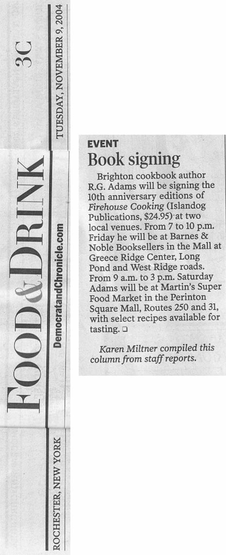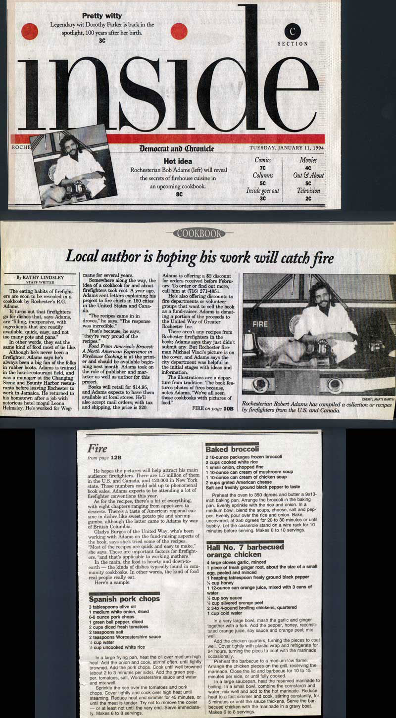 "Firehouse Cooking throws cold water on the notion that the nation’s firefighters simply gobble chili and fried hamburgers between runs….it’s recipes may ring a bell for many other folks, especially those with a run-and-jump lifestyle that leaves little time for preparing meals."